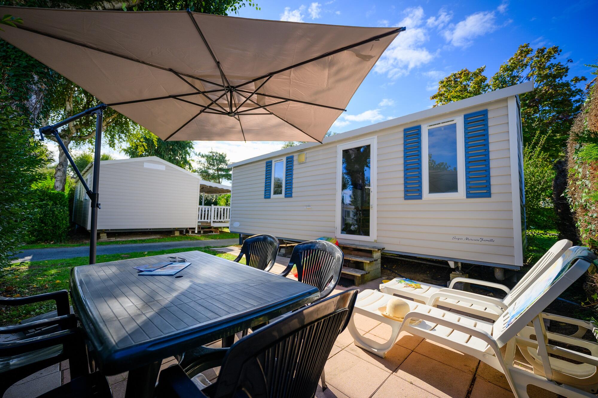- Terrasse en bois avec parasol