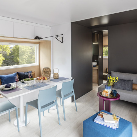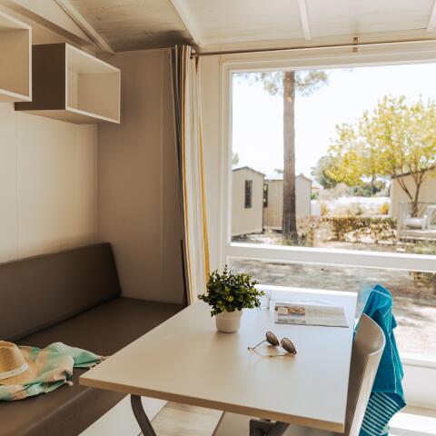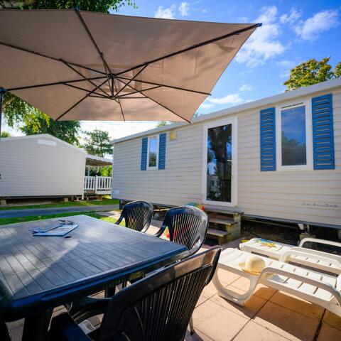 Le Tropicana offers various comfortable accommodations: modern mobile homes for up to 6 people and spacious pitches for tents, caravans, or motorhomes. All accommodations have recent facilities, a private terrace, and access to all campsite services.