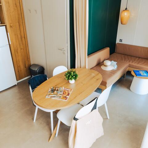 Dans notre camping 5 étoiles à Saint-Jean-de-Monts en Vendée, nous vous proposons une large gamme de locations et mobil-homes adaptés à toutes vos envies. De la gamme Confort au prestigieux Premium TAOS, chaque hébergement est conçu pour votre bien-être : cuisine équipée, chambres spacieuses, salon lumineux et terrasse pour des repas en plein air.