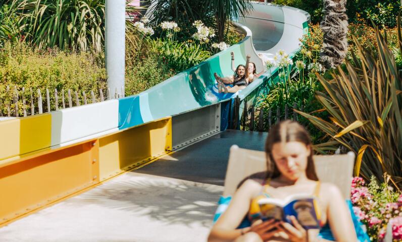 Duik in een 2.000 m² groot waterpark, ideaal voor het hele gezin. Verwarmde zwembaden, glijbanen, een overdekt bad en een wellnessruimte met sauna, hammam en jacuzzi.