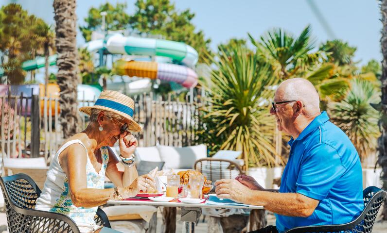 Ons restaurant in Saint-Jean-de-Monts is ideaal gelegen in het hart van camping Sunêlia Le Tropicana, naast het waterpark en de accommodaties. Tussen twee duiken door of na een fietstocht kunt u hier eenvoudig komen lunchen of iets drinken.